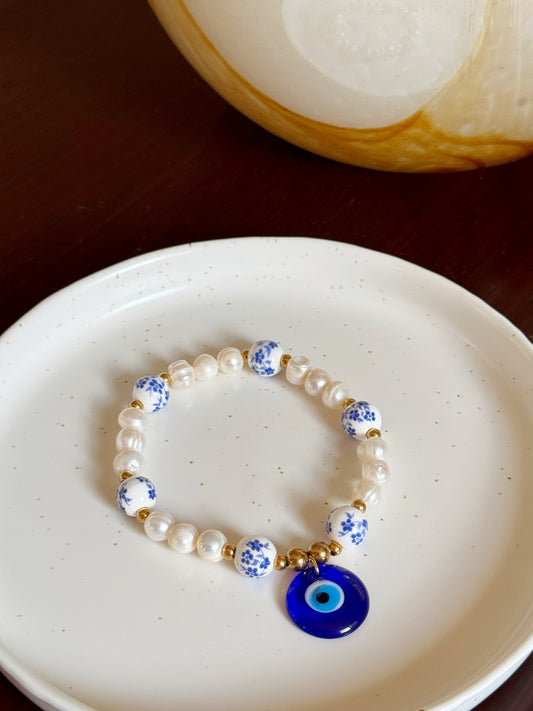 Pulsera perlas & cerámicas azules