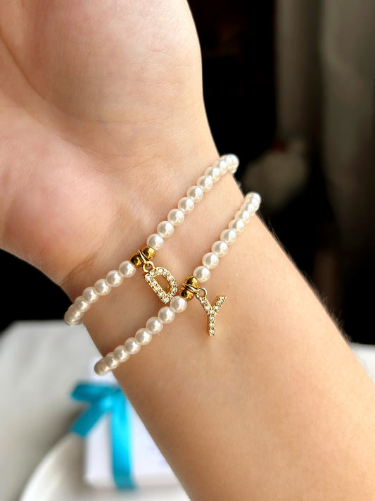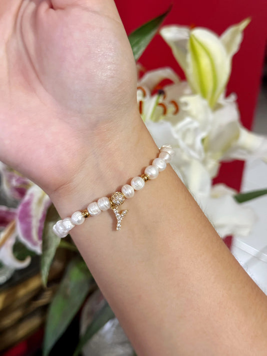 Pulsera perlas con inicial clásica