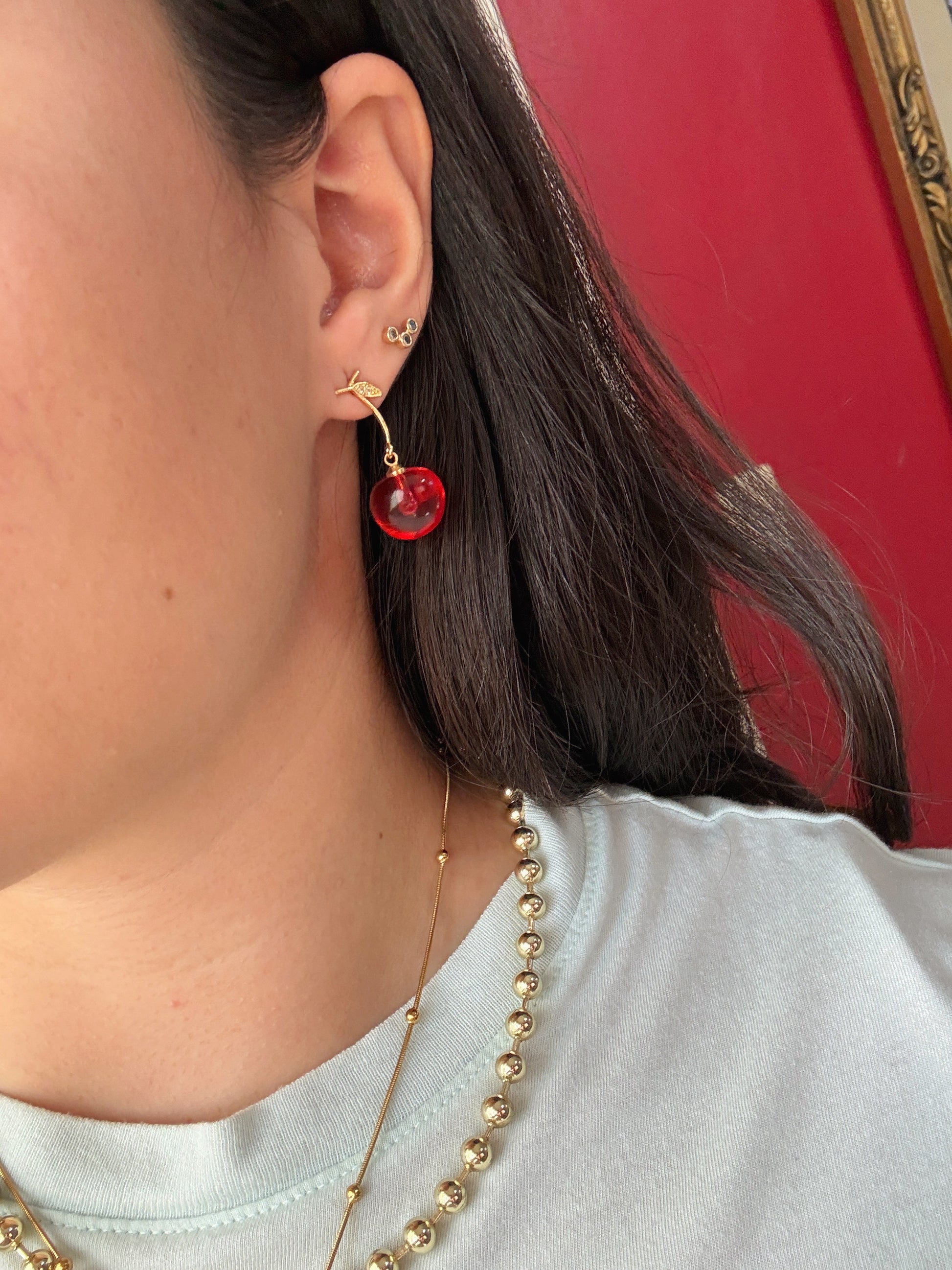 Aritos baño de oro con resina🍒